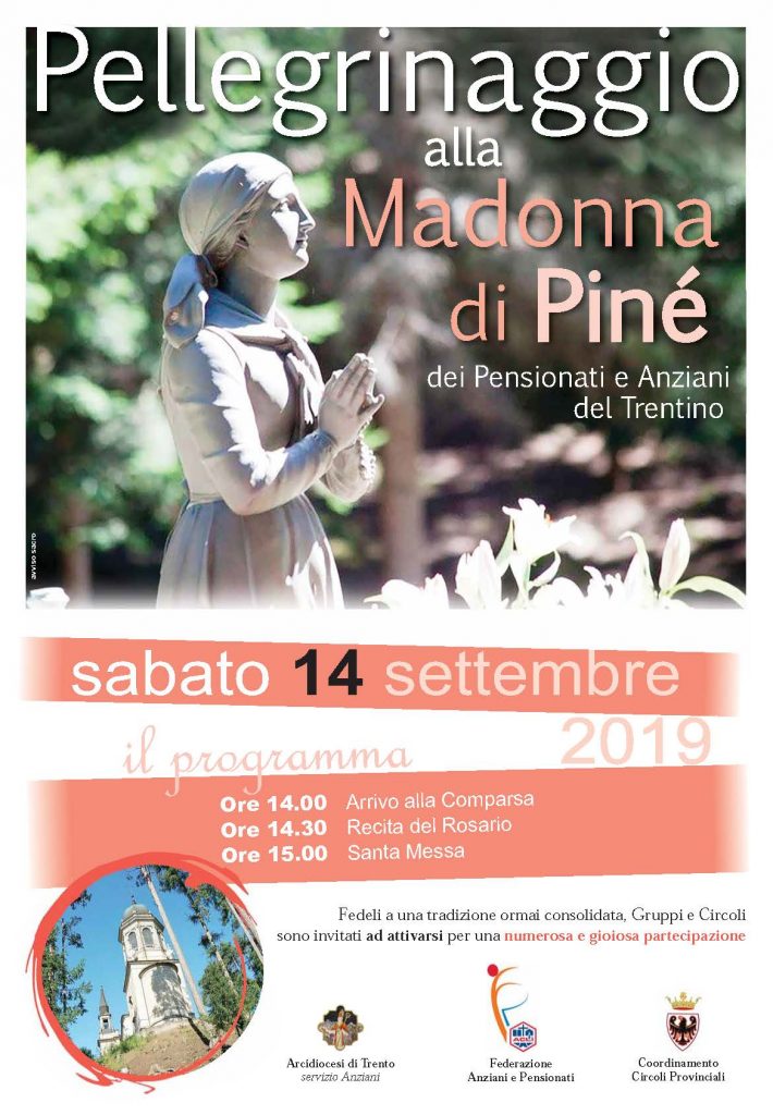 Fedeli a una tradizione ormai consolidata, Gruppi e Circoli Pensionati e Anziani sono invitati a partecipare numerosi al pellegrinaggio alla Madonna di Pinè che culminerà con la celebrazione della s. Messa.