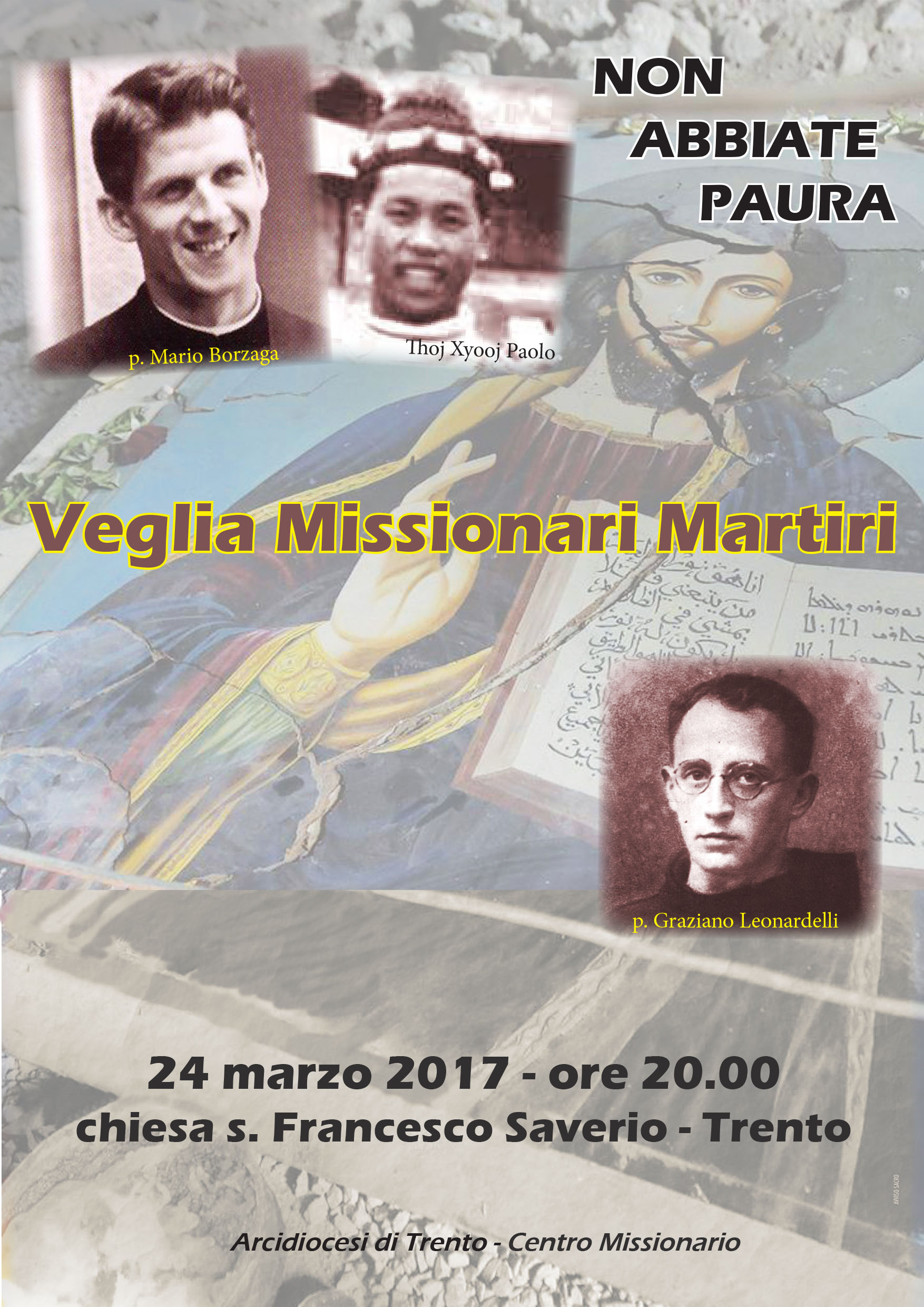 Veglia per i Missionari Martiri presso la chiesa di S. Francesco Saverio, ad ore 20, presieduta dal vescovo Lauro.